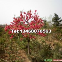 高杆短枝碧桃,5年苗,树形为球形,圆帽,满树开花,花期15天,颜色国旗红,病虫害少,易管理,适合道路公园别墅移植,
