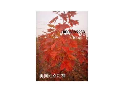 红点(学名:Acer rubrum ‘Redpointe’):原产美国东海岸,是落叶大乔木。生长较快,成年高树12-18米,冠幅12米,能适应多种范围的土壤类型生长。春天开花,花红色。因其秋季色彩夺目,树冠整洁,被广泛应用于公园、小区、街道栽植,既可以园林造景又可以做行道树,深受人们的喜爱,是近几年引进的美化、绿化城市园林的理想珍稀树种之一。也是唯一可以用做行道树的彩叶树种。