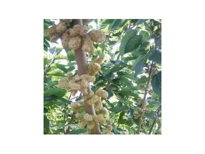 桂花蜜果桑具有果个大、色泽鲜艳、口感独特、含糖量高等优点,果叶兼用。桑果果实长圆柱形,果肉白色,单果重3.8~6.5g,成熟的桑果具有独特的桂花香味,甜如蜂蜜,籽少汁多,含糖量高。667平方米产鲜果1000kg左右。抗病性、抗旱、耐寒性较强。 为了便于采摘,可以密植栽培,667平方米500棵左右,养成低干桑或者中干桑,栽种时间,秋天树叶落光后,进入休眠期进行栽种,或者春天地开冻后进行栽种都可以。种植密度根据土壤肥沃情况等因素进行栽种。定干30公分左右,...年春天发芽后,在不同的方向选留3根健壮的枝条让其生长,其他的芽抹掉,等到秋天,会形成3根健壮的结果枝条,树叶落光后,把过密的枝条进行修剪,便于集中养分,果实更大,口感更好。第二年果实结束后,三根枝条从30公分处短截,每根只留下30公分,每根再留2根新枝,到了秋天第二层会形成6根健壮的结果枝条,第三年同样的留法,到了第三年秋天**上面形成12根健壮的结果枝条,这样,树形便形成了,从第3年以后,结果后,把**上面的12根枝条结果后,每根只留下3~5公分,其他的下伐,肥水跟上,以有机肥为主,夏天会萌发大量的新枝,到秋天,**上面一层仍然选留十几根枝条结果就可以了。当然,实际的种植修剪,要结合当地的实际情况进行操作。 其他优秀果桑苗:紫椹果桑苗、长果桑苗、黑果桑苗、白果桑苗 果桑苗——紫椹 鲜果被称为第三代水果新秀,加工品被誉为二十一世纪**佳天然绿色保健食品 果桑市场发展前景广阔,我国大部分地区都可种植。该品种树形开张,枝条细长,花果极多,果实较大,圆筒形,**大果重10.5克。供应桂花蜜果桑苗
