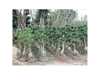 人参榕盆景:由于人参榕貌像寓意长寿的人参,因此近年甚受欢迎。它基部膨大的块根,实际上是其种子发芽时的胚根和下胚轴发生变异突变而形成的。有的植株还在其干基部嫁接了金钱榕或卵叶榕(细叶榕的一个变种),显得更为高雅。