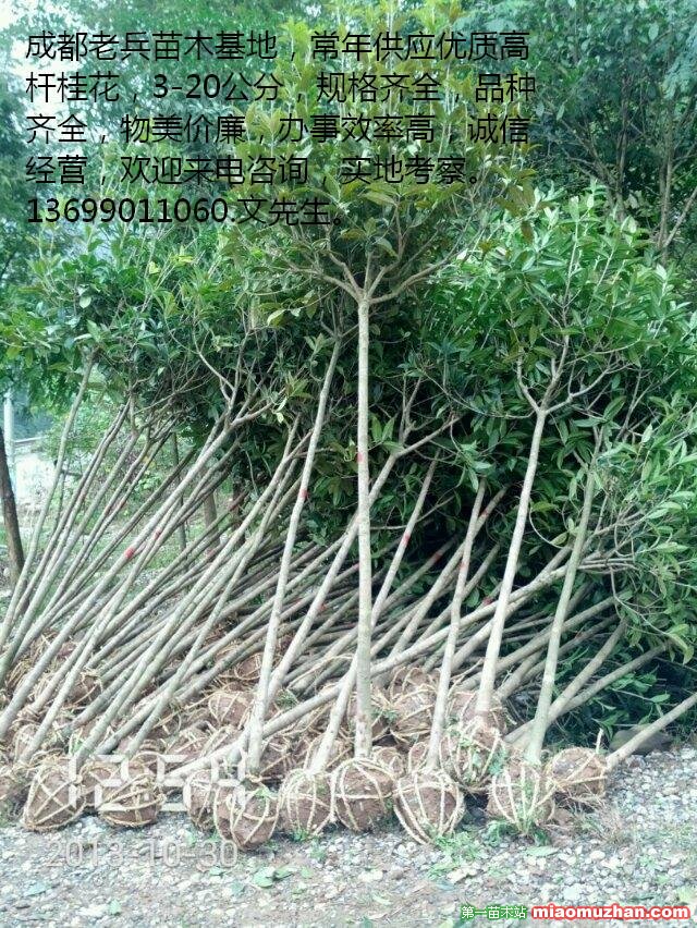 成都老兵园林,专业从事成都优质高杆桂花 ,种植,培育,收集,销售,批发,分支点1.5米左右,树形优美,成活率高,品种齐全,规格全面,物美价廉。