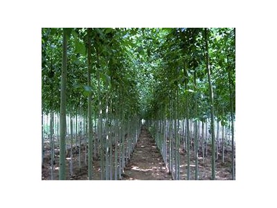 【毛白杨简介】 毛白杨为杨柳科、杨属落叶大乔木,生长快,树干通直挺拔,树形优美,是一个优良的造林绿化树种,毛白杨广泛应用于城乡绿化,其品种适应性强,主根和侧根发达,枝叶茂密,优质,速生,丰产,为速生用材林,防护林和行道河渠绿化的好树种。毛白杨为大乔木,树高达25米。树皮灰白色,老时深灰色,纵裂;幼枝有灰色绒毛,老枝平滑无毛,芽稍有绒毛。叶互生;长枝上的叶片三角状卵形,长10-15厘米,宽8-12厘米,先端尖,基部平截或近心形,具大腺体2枚,边缘有复锯齿,上面深绿色,疏有柔毛,下面有灰白色绒毛,叶柄圆,长2.5~5.5厘米;老枝上的叶片较小,边缘具波状齿,渐无毛;在短枝上的叶更小,卵形或三角形,有波齿,背面无毛。柔荑花序,雌雄异株,先叶开放;雄花序长约10~14厘米;苞片卵圆形,尖裂,具长柔毛;雄蕊8;雌花序长4~7厘米;子房椭圆形,柱头2裂。蒴果长卵形,2裂。花期3月。果期4月毛白杨是大名鼎鼎的落叶乔木,高达30米--40米,生掣速,10年成才一点也没问题,因木材轻而细密,淡黄褐色,纹理直,易加工,可供建筑、家具、胶合板、造纸及人造纤维等用。毛白杨树干端直,树形高大广阔,颇具雄伟气概,加上抗烟尘和抗污染能力强,也常被作为行道树。杨柳科都是雌雄异株,毛白杨雄株花开得比较早,3月中上旬,叶子还没长满树就挂满黑色的“毛毛虫”(杨柳科多数花序叫柔荑(ti四声)花序,像一个下垂的狗尾巴草花穗),树叶快长出来的时候黑色“毛毛虫”就掉光了,所以雄株不飘絮。讨人烦的杨絮是雌株惹的祸,刚开始雌株的花序也是黑色的像毛毛虫,但“毛毛虫”不掉,而是很快变成绿色,与叶子一起生长,等到4月中旬叶子长满树冠的时候它也开始飘絮了。毛白杨基地 毛白杨苗圃 专营毛白杨