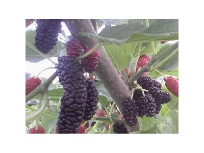 黑桑市场发展前景广阔,我国大部分地区都可种植。该品种树形开张,枝条细长,花果极多,果实较大,圆筒形。果实成熟后由紫红色到黑色,果面光泽性强,颜色鲜艳,光亮美观,象黑珍珠一样。口感甜。叶片可养蚕或炒茶,果实可加工成罐头、果汁、酒、茶、还可以加入酸奶中,应用广泛,速冻果和加工品市场出口前景广阔。该树种适应性广,抗性强、生长快,结果早,效益好,果实美观,采摘期长,是当前建设生态采摘园的首选品种,也是山区丘陵地区**有发展前景的致富项目之一。