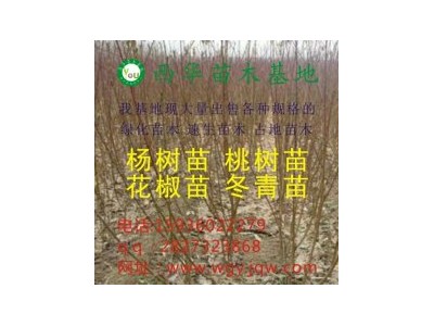 我基地现低价供应:杨树苗、花椒苗、桃树苗、毛桃、楸树、梨树苗、冬青苗、大叶女贞、国槐、红叶李、苹果苗、泡桐等,需要的话可以联系:15936022279
