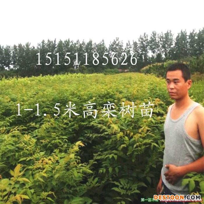 栾树苗、1米高栾树苗价格、江苏栾树小苗、栾树小苗价格、3-10公分栾树批发15151185626李金国【栾树概述】栾树是一种乔木,高可达10米,生长于石灰石风化产生的钙基土壤中,不耐寒,在中国只分布在黄河流域和长江流域下游,在海河流域以北很少见,也不能生长在硅基酸性的红土地区。栾树春季发芽较晚,秋季落叶早,因此每年的生长期较短,生长缓慢,树形扭曲美观,不太成材,木材只能用于制造一些小器具,种子可以榨制工业用油。但是一种良好的绿化用树。 【栾树形态特征】 落叶乔木,高达20m左右,树冠近圆球形,树皮灰褐色,细纵裂;小枝稍有棱,无顶芽,皮孔明显,奇数羽状复叶,有时部分小叶深裂而为不完全的二回羽状复叶,长达40cm,小叶7-15cm,卵形或长卵形,边缘具锯齿或裂片,背面沿脉有短柔毛。顶生大型圆锥花序,花小金黄色。蒴果三角状卵形,顶端尖,红褐色或桔红色。花期6-9月,果期9-10月。 【栾树简介】 别名:灯笼树、摇钱树、金雨树、国庆花。学名:Koelreuteria paniculata。科属:无患子科、栾树属 落叶乔木,高达20米,树冠为近似的圆球形,冠幅8—12米,奇数羽状复叶互生,小叶7—15枚,叶缘有齿,春季嫩叶褐红色,秋季变为黄褐色,花小,花瓣黄色,基部有红色斑,在枝顶组成圆锥花序,花期6~8月,果期9~10月,种子黑色,圆球形。 观赏价值:栾树树形端庄整齐,叶、花、果均可供观赏,用于林荫路、人行道的绿化尤为适宜。轩轩苗木场常年销售各种花卉苗木种子:乔木类:紫薇,樱花,桂花,合欢(红花),金合欢,木瓜海棠,白玉兰,五角枫,三角枫,青枫,红枫,美国红枫、元宝枫,凤凰木,黄花槐,羊蹄甲,四照花,台湾相思树,木荷,国槐,银杏,枸树,大叶女贞,香樟,皂角,无患子,香椿,臭椿,黄山栾,北京栾,紫叶桃,黄连木,文冠果,杉木,白榆,橡树,红豆杉,雪松。 花灌木类:腊梅,紫荆,牡丹,榆叶梅,连翘,珍珠梅,黄刺玫,银合欢,小皂角,绣线菊。 松柏树类:黑松,华山松,五针松,湿地松,落叶松,三尖杉,雪松,马尾松,白皮松,油松,侧柏,洒金柏,罗汉松。 攀援花卉种子:紫藤种子,爬山虎种子,藤本月季种子,蔷薇种子。 草本花卉种子:野花组合,百日花,鸡冠花,金鸡菊,黑心菊,矢车菊,翠菊,万寿菊,硫华菊,五彩石竹,多边小冠花,蜀葵,大花秋葵,牵牛花,虞美人,紫花地丁,月见草,观赏向日葵,油菜花,红三叶,白三叶,杂三叶,马蹄金。 草坪种子:高羊茅,紫羊茅,苇状羊茅,狗牙根,百喜草,狼尾草,剪股颖,碱茅草,黑麦草,早熟禾。 牧草种子:紫花苜蓿,墨西哥玉米草,高丹草,苏丹草,籽粒苋,菊苣,苦买菜,一年生黑麦草,沙打旺,草木犀,紫云英。 以上品种常年有货保质保量,其中大部分本地品种我们为您提供比较专业的育苗方法。我们支持的交易方式有三种,1.银行汇款2.支付宝交易3.顺丰快递代收货款。款到当天发货,正常情况下江浙沪范围内隔天到货,其他省份2-4天到货