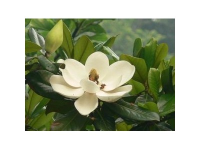 广玉兰,又称“荷花玉兰”,“泽玉兰”,常绿乔木,树形高大,5-6月开花,花大,乳白色,形似荷花,有芳香味,适合在