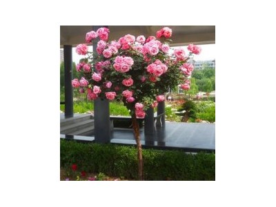 绿化用途广 在环城行道、公园、风景区、小区庭院等一切有绿地的地方,树状月季都能起到画龙点睛的美化功效。