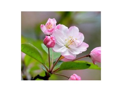 别名小果海棠,蔷薇科苹果属。株高3~5爪,树姿峭立,小枝紫褐色或暗褐色;单叶互生,叶椭圆形至长椭圆形,先端渐尖,基部广楔形,缘有尖锐锯齿;伞形总状花序,花粉红色,花期4月; 梨果近球形,红色,果期8~9月。喜光,不耐荫;耐寒;喜深厚肥沃、排水良好的中性土壤,耐干旱、盐碱。产于我国四川西部、云南西北部等,各地均有栽培。