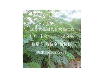 生长环境:喜温暖湿润和阳光充足环境,对气候和土壤适应性强,宜在排水良好、肥沃土壤生长,但也耐瘠薄土壤和干旱气候,但不耐水涝。生长迅速。性喜光,喜温暖,耐寒、耐旱、耐土壤瘠薄及轻度盐碱,对二氧化硫、氯化氢等有害气体有较强的抗性。 合欢花花语:象征永远恩爱、两两相对、是夫妻好合的象征。相传虞舜南巡仓梧而死,其妃娥皇、女英遍寻湘江,终未寻见。二妃终日恸哭,泪尽滴血,血尽而死,逐为其神。后来,人们发现她们的精灵与虞舜的精灵“合二为一”,变成了合欢树。合欢树叶,昼开夜合,相亲相爱。自此,人们常以合欢表示忠贞不渝的爱情。 合欢树传说:传说:古时候,这合欢树叫做苦情树,也并不开花。苦情开花变合欢,要从一位秀才说起。秀才寒窗苦读十年,准备进京考前功名。临行时,妻子粉扇指着窗前的苦情树对他说:“夫君此去,并能高中,只是京城乱花迷眼,切莫忘了回家的路!”秀才应诺而去。却从此杳无音信。粉扇在家盼了又盼,等了又等,青丝变白发,也没有等回夫君的身影。在生命的今天即将到了的时候,粉扇拖着病弱的身体,挣扎着来到那株印证她和丈夫誓言粉苦情树前,用生命发下重誓:“如果夫君变心,从今往后,让这苦情开花,夫为叶,我为花,花不老,叶不落,一生同心,世世合欢!”说罢,气绝身亡。第二年,所有的苦情树果真都开了花,粉柔柔的,像一把把小小的扇子挂满了枝头,还带着一股淡淡的香气,只是花期很短,只有一天。而且,从那时开始,所有的叶子居然也是随着花开花谢来晨展暮合。人们为了纪念粉扇的痴情,也就把苦情树改名为合欢树了。江苏紫薇园艺销售1-2年生绿化小苗、绿化种苗。主要品种有:紫薇、复叶槭、白玉兰、广玉兰、五角枫、合欢、木槿、大叶女贞、银杏、腊梅、皂角、无患子、樱花、巨紫荆、国槐、紫叶李、紫藤、紫荆、桃树、西府海棠、月季等各种绿化苗木。