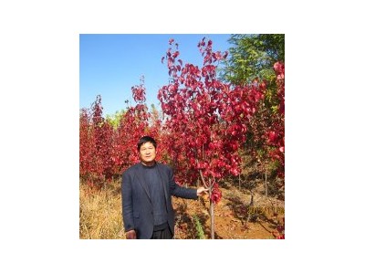 彩叶豆梨:落叶性乔木,高可达8米以上,树皮灰褐色,枝条尖削度小,无毛,冬芽有细毛,节间长1.3-3.5公分,叶广卵形至卵形,长4-8公分,宽3-6公分,先端渐尖,罕短突尖。叶基楔形,钝齿缘。叶柄长1.5-3公分,10月下旬至落叶期间叶片呈鲜红色,蜡质、光亮。花序及萼筒无毛,花白色,雄蕊约20枚,花大,花期长,抗霜力较强,果球星,深褐色,萼脱落,子房2-3室,该树种生长快、抗盐碱,耐水湿,在浅流水中20天亦不致凋萎,含盐量小于0.4%的砾质砂土,低沙洼地、碱地生长良好,寿命可达200年以上,是目前**有发展前途的彩叶树种。