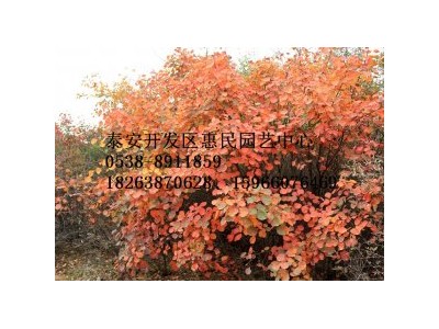 黄栌(Cotinus coggygria Scop.)别名红叶、红叶黄栌、黄道栌、黄溜子、黄龙头、黄栌材、黄栌柴、黄栌会等,是中国重要的观赏红叶树种,叶片秋季变红,鲜艳夺目,著名的北京香山红叶就是该树种。其在园林中适宜丛植于草坪、土丘或山坡,亦可混植于其它树群尤其是常绿树群中。黄栌花后久留不落的不孕花的花梗呈粉红色羽毛状在枝头形成似云似雾的景观;黄栌也是良好的造林树种。 黄栌性喜光,也耐半阴;耐寒,耐干旱瘠薄和碱性土壤,不耐水湿,宜植于土层深厚、肥沃而排水良好的砂质壤土中。 生长快,根系发达,萌蘖性强。对二氧化硫有较强抗性。秋季当昼夜温差大于10℃时,叶色变红。 规格:0.5-1,1-3公分,3-5公分 联系人:潘经理 联系电话:18263870628 联系地址:山东省泰安市岱岳区北集坡镇
