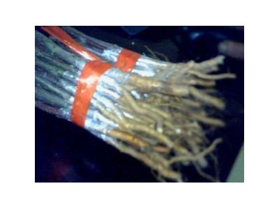 北美海棠根接苗,就是把当年生的甜茶苗的主根打成10公分的段,然后把北美海棠、冬红海棠、西府海棠、垂丝海棠等品种的种条接穗,剪成10公分一段,然后嫁接在一起,用我们专业的嫁接膜将接口包好。储存大约10天左右,即可下地栽种。