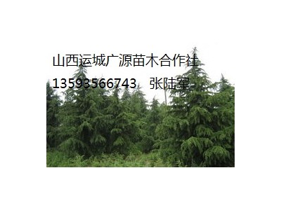山西运城广源苗木合作社出售雪松、8米、9米、10米以上价格优惠供应: 各种规格的华山松小苗、华山松小苗价格、油松、白皮松苗容器;20-30公分(容器),30-50公分(容器),60-80公分,80-1米,1-2米,2-3米,3-4米,4-5米,5-6米。冬青,石榴,国槐;刺槐,山楂树,苹果树,柿子树,桃树侧柏油松白皮松苗容器华山松国槐冬青雪松桧柏金丝柳漳河柳黄金槐元宝枫杜仲紫叶李红叶李女贞胶东尾毛、法桐、牡丹 我基地有文冠果苗200万株、红连木200万株、海棠苗200万株、山桃苗100万株、毛桃苗200万、杜梨苗200万、软枣苗100万、山楂苗50万。 联系人:张陆军:13593566743 15234366963 联系电话:0359-8848679