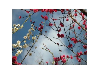 红梅,梅花的别称。株高约10m,干呈褐紫色,多纵驳纹。小枝呈绿色。叶片广卵形至卵形,边缘具细锯齿。花每节1~2朵,无梗或具短梗,花呈淡粉红或红色,栽培品种则有紫、红等花色,于早春先叶而开。 梅花可分为系、类、型。如真梅系、杏梅系、樱李梅系等。系下分类,类下分型。梅花为落叶小乔木,树干灰褐色,小枝细长绿色无毛,叶卵形或圆卵形,叶缘有细齿,花芽着生在长枝的叶腋间,每节着花1~2朵,芳香,花瓣5枚,水红至深红,也有重瓣品种。核果近球形,有缝合线,黄色或绿色,被柔毛,味酸,果肉与核粘附不易分离,6~7月果实成熟。 生长习性: 喜温暖气候,花期对气候变化特别敏感。梅喜空气湿度较大,但花期忌暴雨。梅在年雨量1000mm或稍多地区可生长良好对土壤要求不严,较耐瘠薄。阳性树种,喜阳光充足,通风良好。为长寿树种。 园林应用: 红梅在园林、绿地、庭园、风景区,可孤植、丛植、群植等;也可屋前、坡上、石际、路边自然配植。若用常绿乔木或深色建筑作背景,更可衬托出梅花玉洁冰清之美。