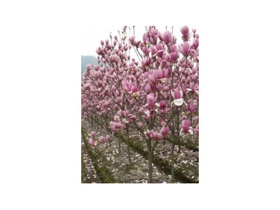 落叶乔木,高达3米,常丛生,树皮灰褐色,小枝绿紫色或淡褐紫色。叶椭圆状倒卵形或倒卵形,长8-18厘米,宽3-10厘米,先端急尖或渐尖,基部渐狭沿叶柄下延至托叶痕,上面深绿色,幼嫩时疏生短柔毛,下面灰绿色,沿脉有短柔毛;侧脉每边8-10条,叶柄长8-20毫米,托叶痕约为叶柄长之半。花蕾卵圆形,被淡黄色绢毛;花叶同时开放,瓶形,直立于粗壮、被毛的花梗上,稍有香气;花被片9-12,外轮3片萼片状,紫绿色,披针形长2-3.5厘米,常早落,内两轮肉质,外面紫色或紫红色,内面带白色,花瓣状,椭圆状倒卵形,长8-10厘米,宽3-4.5厘米;雄蕊紫红色,长8-10毫米,花药长约7毫米,侧向开裂,药隔伸出成短尖头;雌蕊群长约1.5厘米,淡紫色,无毛。聚合果深紫褐色,变褐色,圆柱形,长7-10厘米;成熟蓇葖近圆球形,顶端具短喙。花期3-4月,果期8-9月。 生长环境: 喜温暖湿润和阳光充足环境,较耐寒,但不耐旱和盐碱,怕水淹,要求肥沃、排水好的沙壤土.