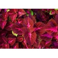 彩叶草—多年生草本。株高15-50厘米厘米,最高可达90厘米,常木质化,分枝少。叶对生,卵圆形,叶面彩色,因品种不同有黄、红、紫、橙、绿等各色斑纹。花期夏秋季,圆锥花序,花小,淡蓝或带白色。