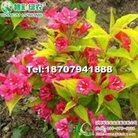 金叶锦带从美国新引进的优良彩叶观花树种,红王子锦带的优良芽变新类型,忍冬科锦带属落叶灌木。在江西地区4月至5月中旬开花,花鲜红色,繁茂艳丽,整个生长季叶片为金黄色,抗寒性强,可耐-29℃左右低温,也较耐干旱、耐污染。花期自4月陆续开到10月份,枝条开展成拱形,叶长椭圆形,嫩枝淡红色,老枝灰褐色。聚伞花序生于叶腋或枝顶,花冠漏斗状钟形,夏初开花,花朵密集,花冠胭脂红色,艳丽而醒目。修剪一次,发一次芽,花更旺。红花点缀金叶中,甚为美观.可孤植于庭院的草坪之中,也可丛植于路旁,也可用来做色块,树形格外美观,是锦带花的换代品种,具有很高的观赏价值。 供苗:试种200株9元每株,种植1000株以上8元每株,最少50株起邮10元每株。