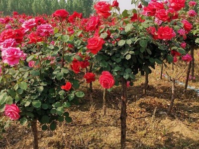 【南阳月季简介】为常绿、半常绿低矮灌木,四季开花。适应性强 树状月季的花冠比一般花卉离地面远,不容易感染土壤病虫害;树干取材于蔷薇,根系发达、生命力极强,特别是碱性偏高地区,种植普通月季困难,树状月季填补其空白。