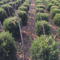 【塔柏球生长习性】塔柏球要求温暖湿润的气候条件,对土壤的适应性很广,在干旱瘠薄、土壤板结粘重的地方均可生长,它即耐旱又稍耐水湿。但在地下水位过高或低洼地上易烂根而死亡。